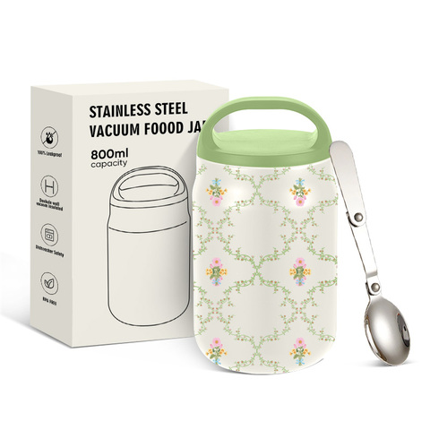 Everich ODM 800ml เหยือกสแตนเลสสุญญากาศใส่อาหารที่มีฝาปิดและช้อนสแตนเลสสตีล